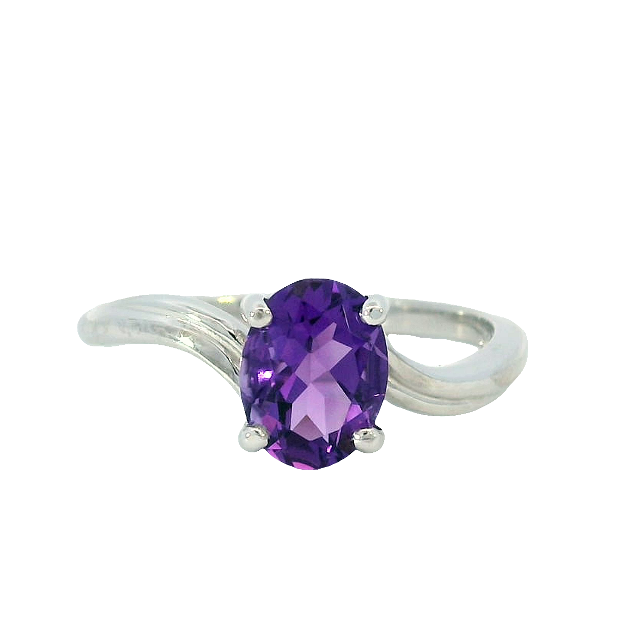 Discover the beauty of this elegant oval amethyst ring,measuring 8x6 millimeters, featuring a stunning oval gemstone set in a sleek 14k white gold band. The rich purple hue of the amethyst is sure to catch the eye, making it a perfect accessory for any occasion. Whether you're dressing up for a night out or adding a touch of sophistication to your everyday look, this ring is a must-have addition to your jewelry collection.