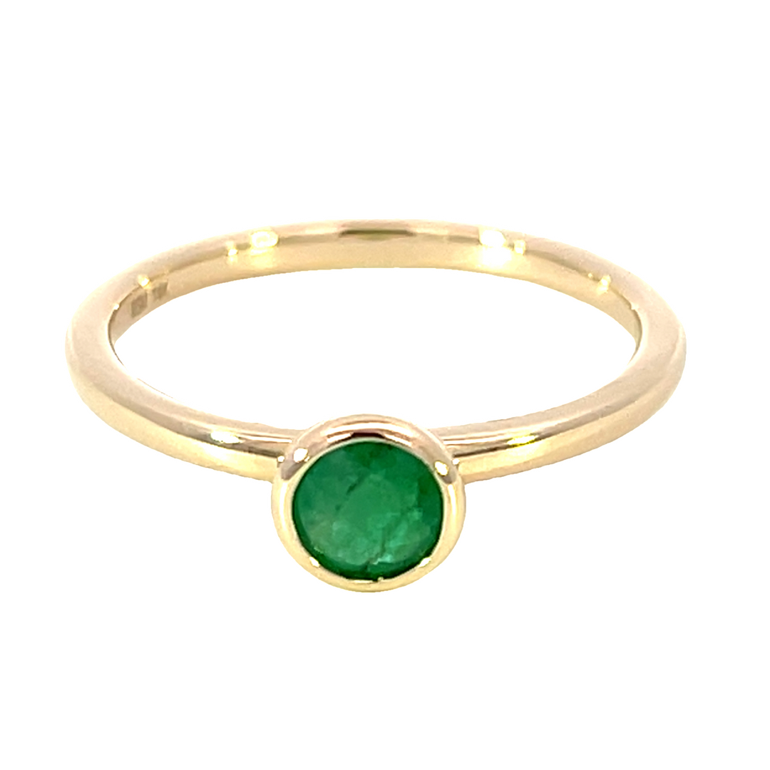 14k Yellow Gold Round Aquamarine Solitaire Ring