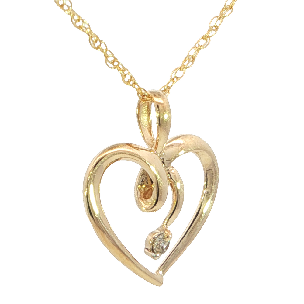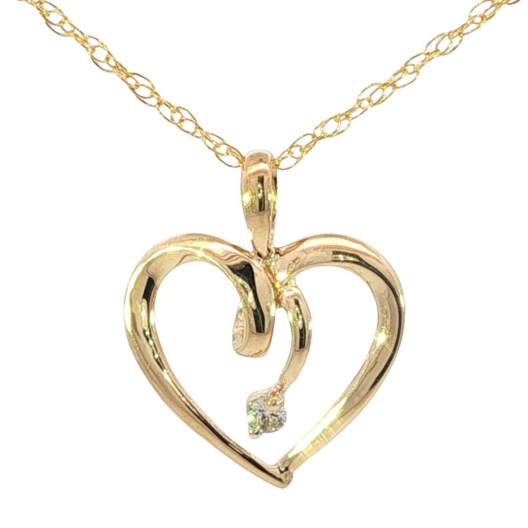 Open Heart Diamond Pendant, 14k Yellow Gold