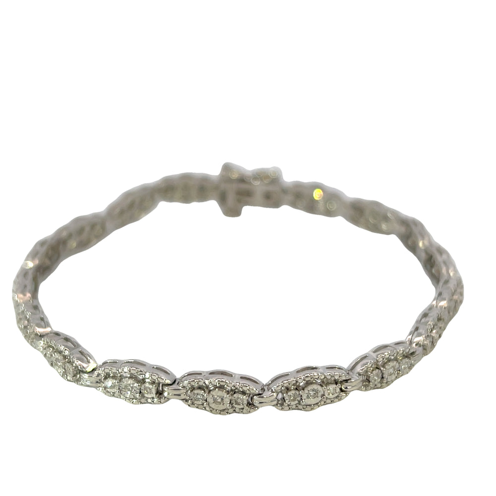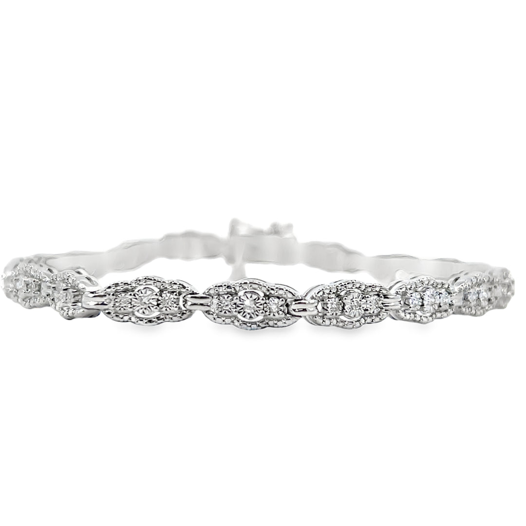 Sterling Silver Fancy Link .19ct Total Diamond Bracelet