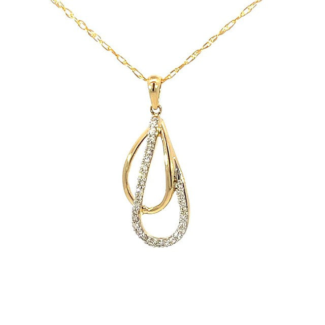 Double Teardrop Diamond Pendant, 14k Yellow Gold