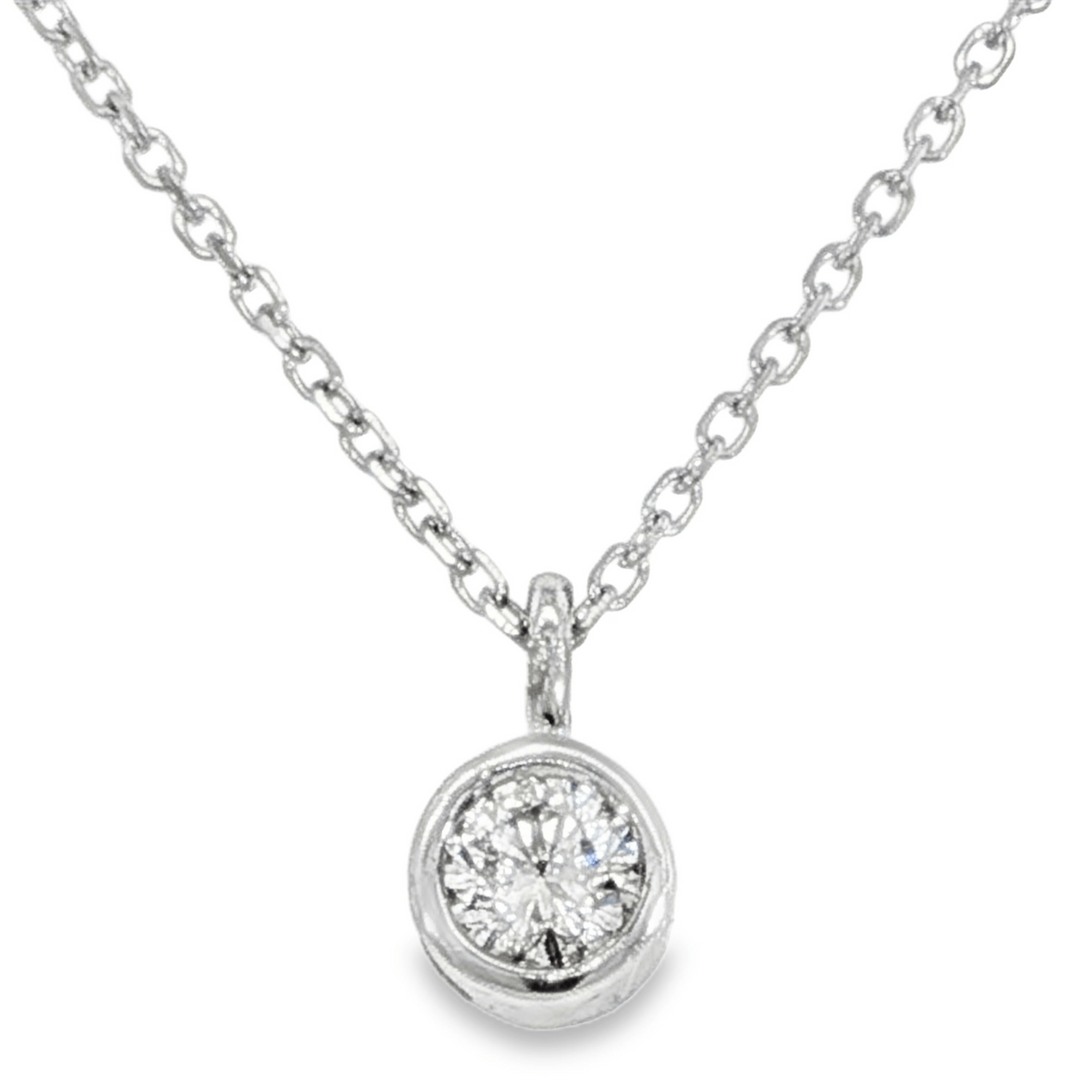 Bezel Style .13ct Diamond Pendant, 14k White Gold