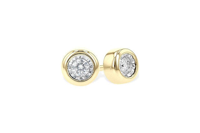 14k Yellow Gold Illusion Plate Bezel Set .10ct Total Natural Diamond Earrings