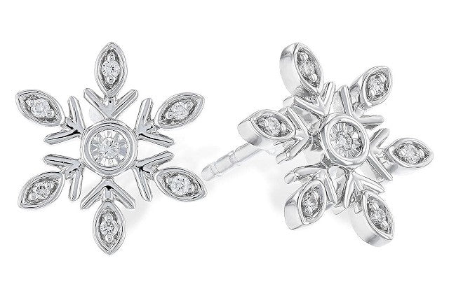 14k White Gold Snowflake 4 Prong Stud .07ct Total Natural Diamond Earrings