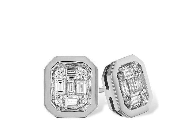 14k White Gold Illusion Plate Bezel Set .10ct Total Natural Diamond Earrings