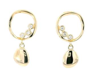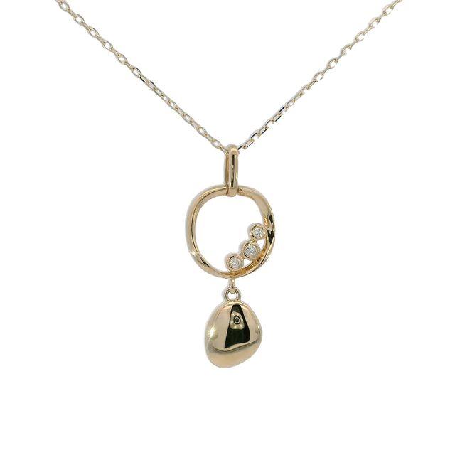 Open Circle & Diamond Dangle Pebble Pendant, 14k Goldt
