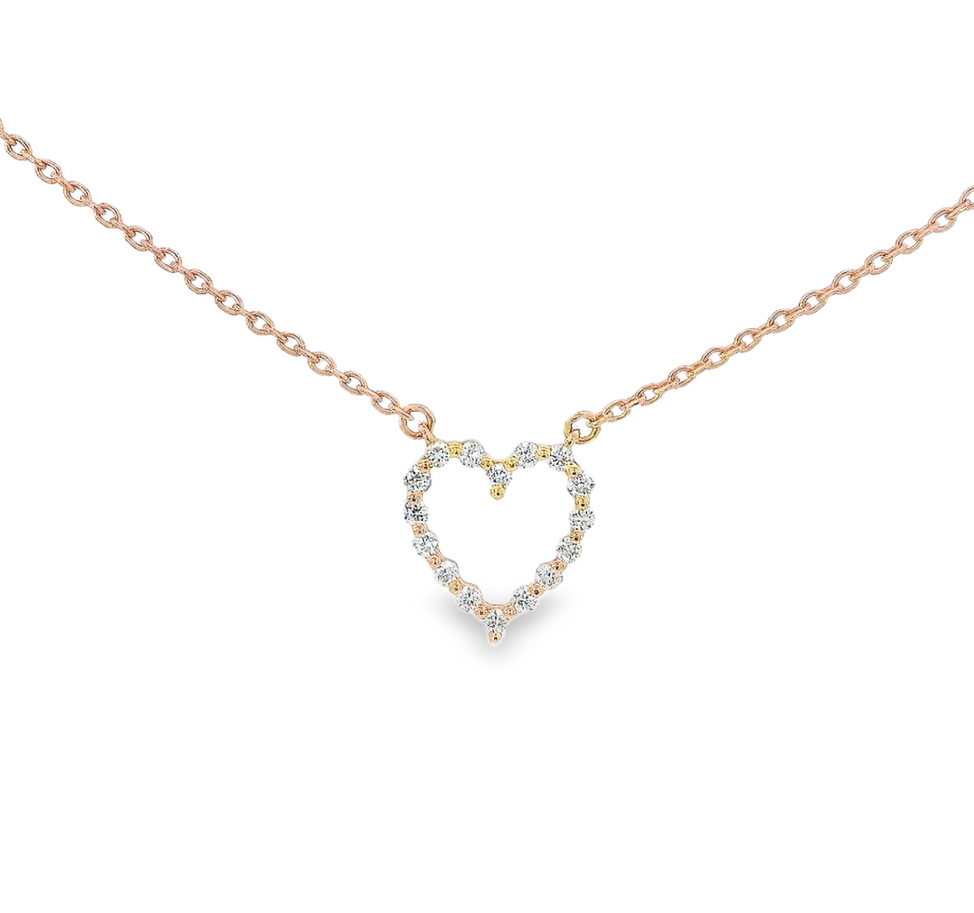 Mini Open Heart Diamond Pendant, 14K Rose Gold