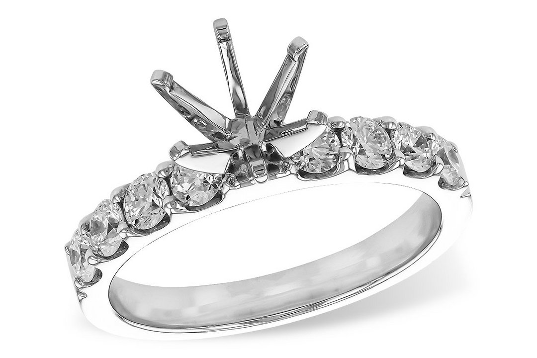 Single Row Style Shared Prong Engagement Ring Mounting 14k White Gold .25 total Carat Weight