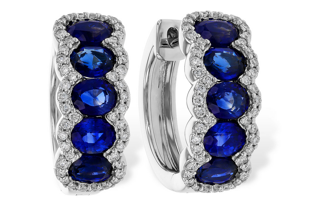 14k White Gold Oval Sapphire Medium Hoop Earrings