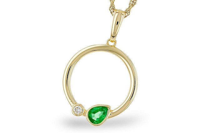 14k Yellow Gold Pear Emerald Free Form Pendant