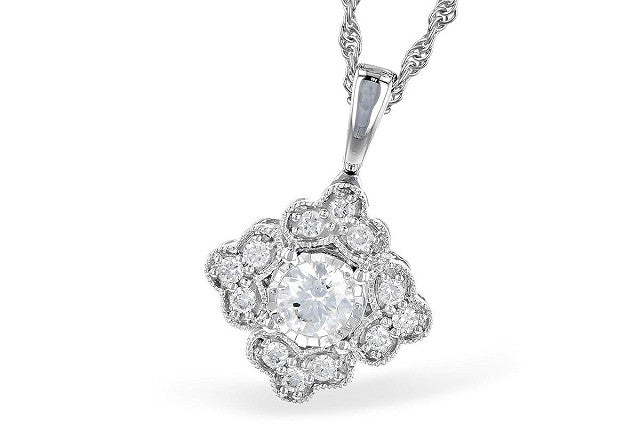 Vintage Inspired Diamond Pendant, 14k White Gold