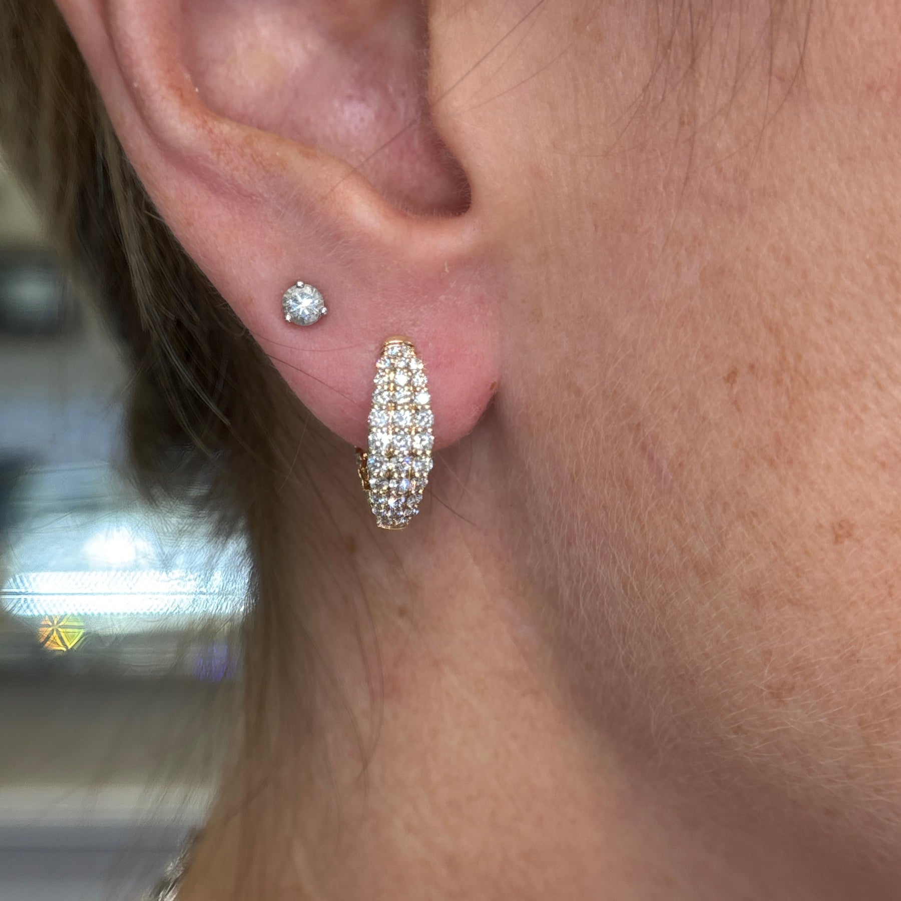 Turn up the sparkle with these bold and brilliant hoop earrings! Featuring three dazzling rows of natural diamonds—1 full carat of G color, I1 clarity shimmer—set in rich 14k yellow gold. These hoops bring the glam and then some. Whether you're dressing up or just feeling fabulous, they will become your go-to for golden glow and serious shine.