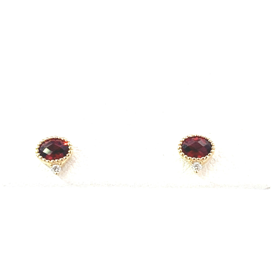 14k Yellow Gold Oval Mozambique Garnet Stud Earrings
