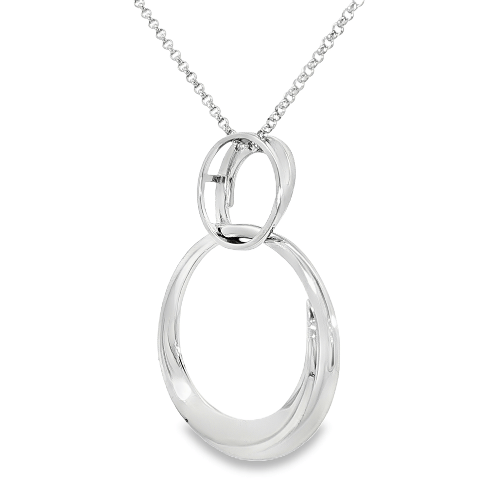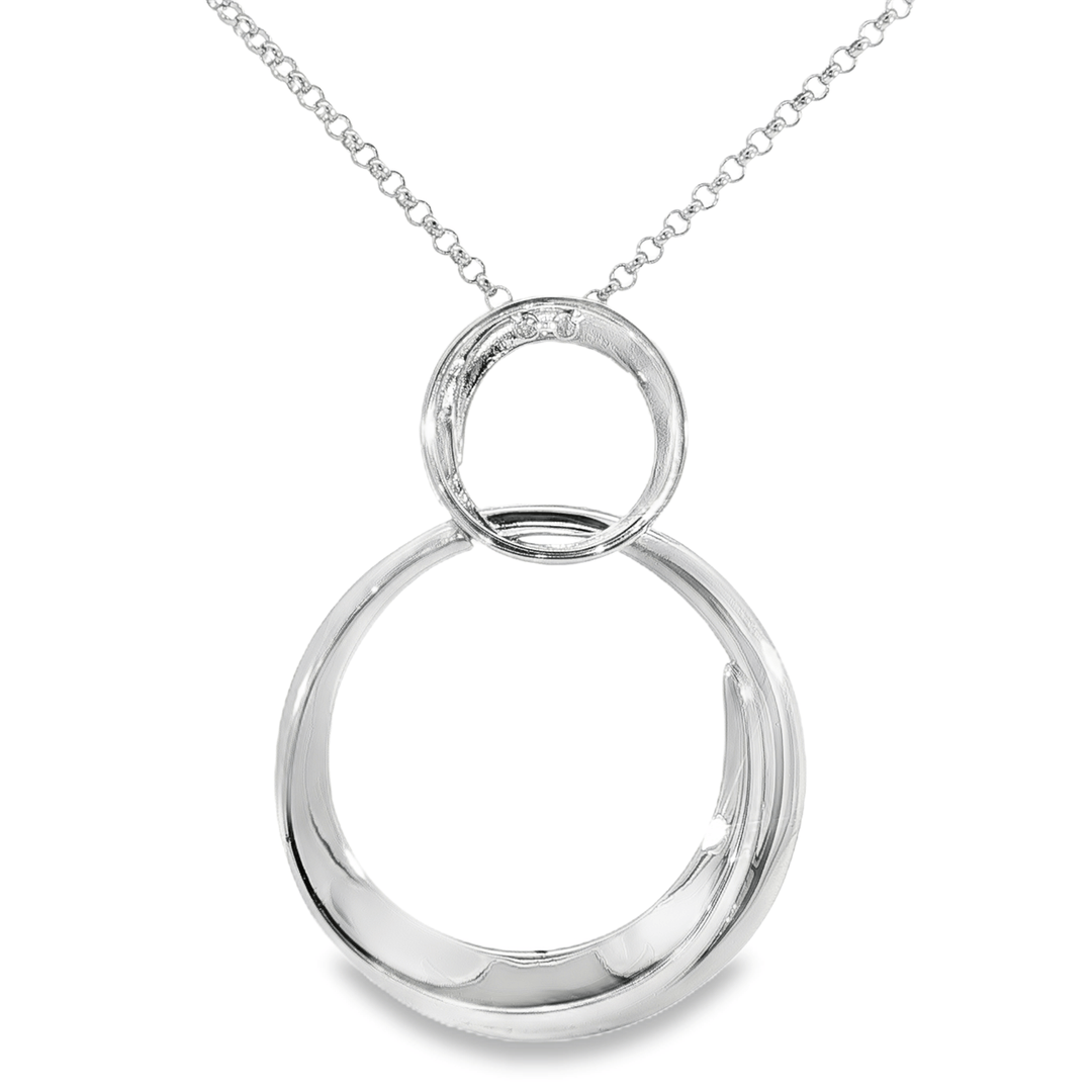 Drop Double Ciircle Pendant in Sterling Silver White Gold