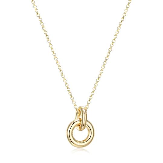 Drop Double Circle Pendant in Sterling Silver Yellow Gold Plated