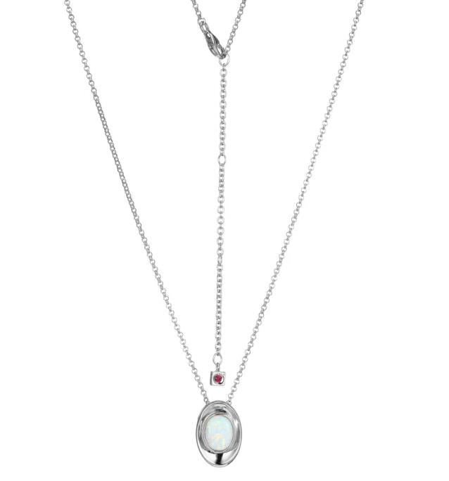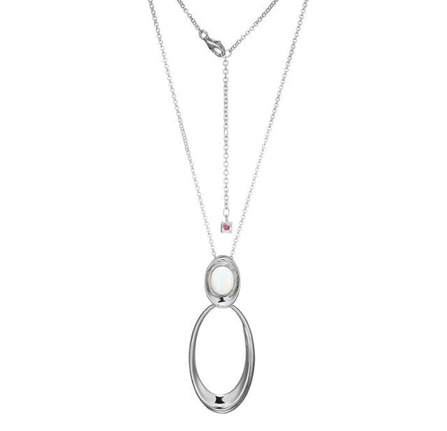Double Oval Pendant with Lab Opal, Sterling Silver