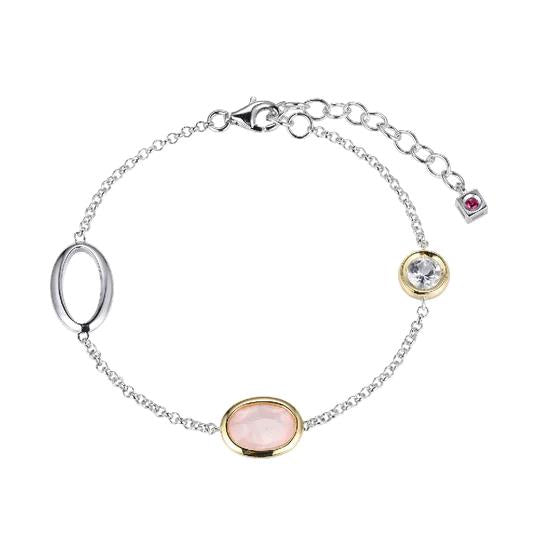 Sterling Silver Oval Multi Gemstone Cable Link Bracelet