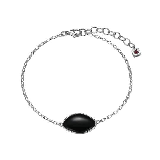 Sterling Silver White Gold Oval Onyx Cable Link Bracelet