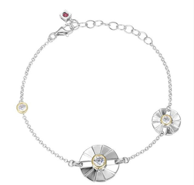 Sterling Silver Yellow Gold Plated Round Cubic Zirconia Fancy Link Bracelet