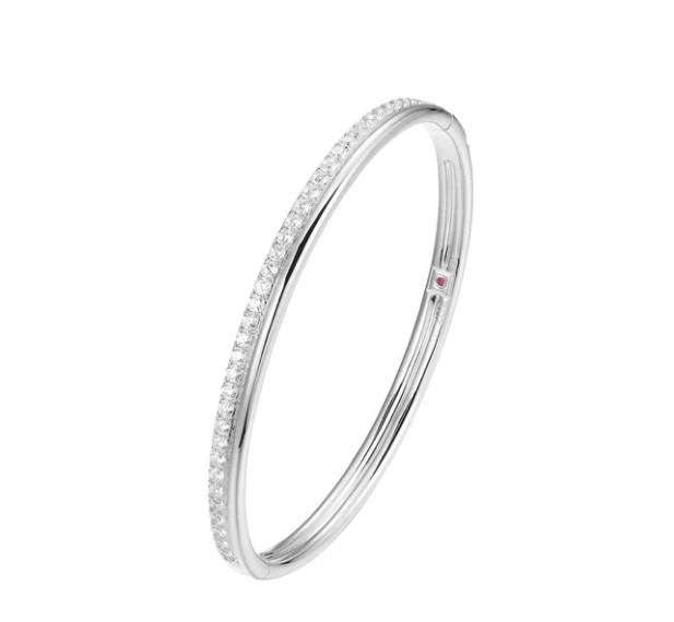 Sterling Silver White Gold Round Cubic Zirconia Cuff Bracelet
