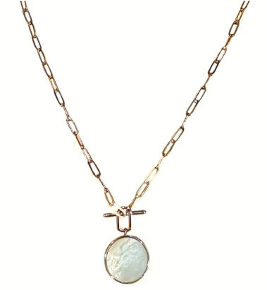Round Mother of Pearl Drop Toggle Pendant in Sterling Silver Yellow Gold Plated
