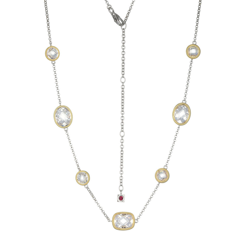 Multi-Shaped CZ Station Necklace, Sterling Silver