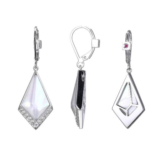 Mother of Pearl & White Crystal Doublet Earrings, Sterling Silver
