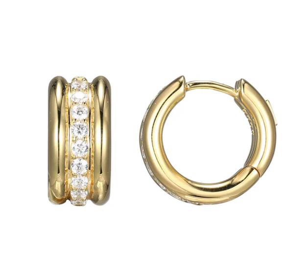 Round Cubic Zirconia Huggie earrings in Yellow Plated