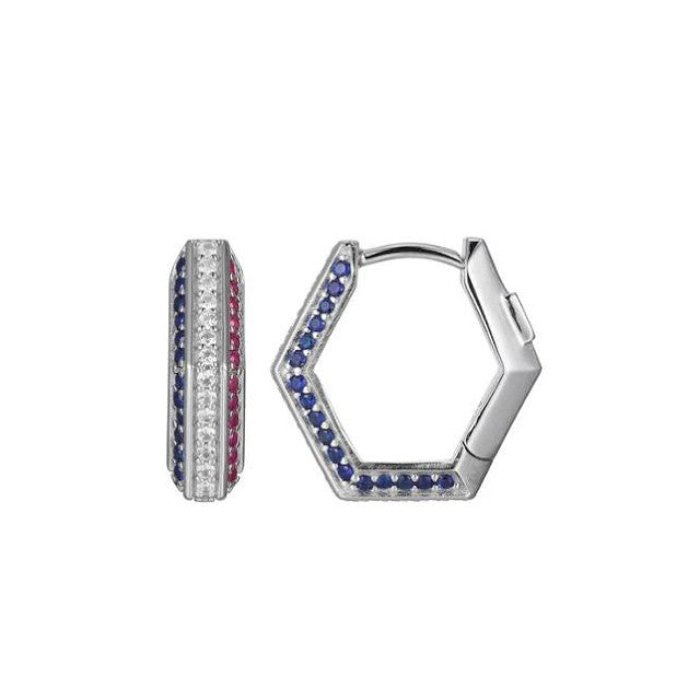 Round Multi Gemstone Small Hoop earrings in Sterling Silver