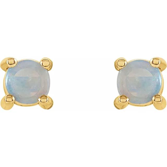4mm Genuine Round Opal Post Earrings, 14K Yellow Gold