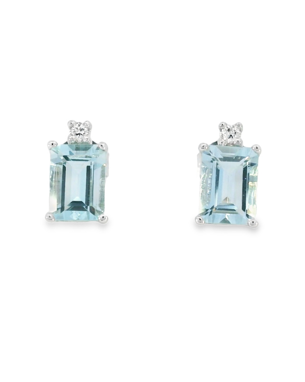 Emerald Cut Aquamarine Earrings, 14k White Gold