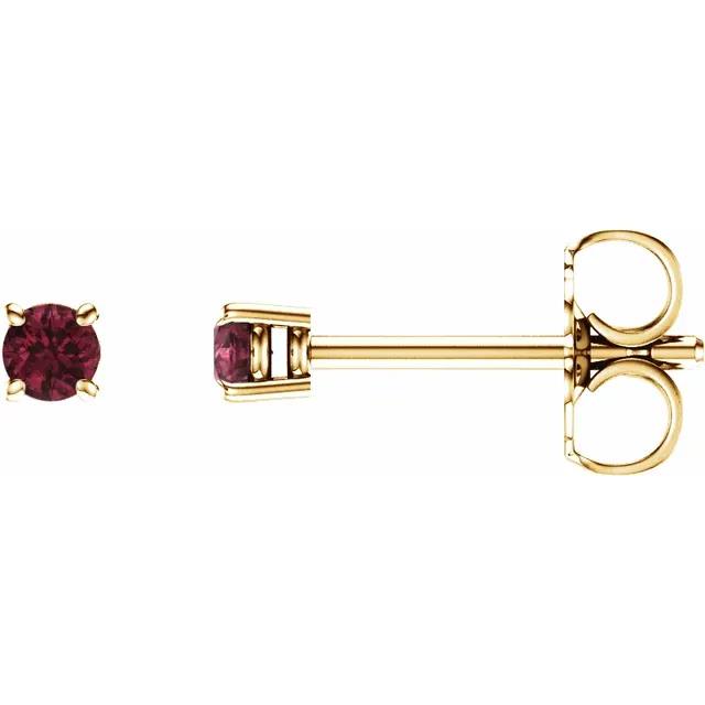 14k Yellow Gold Round Mozambique Garnet Stud Earrings