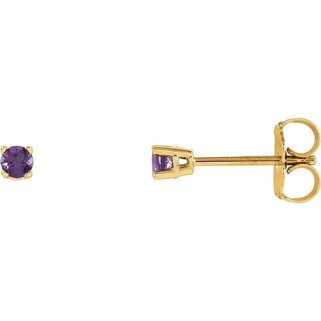 14k Yellow Gold Round Rhodolite Garnet Stud Earrings