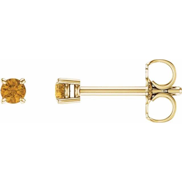 14k Yellow Gold Round Aquamarine Stud Earrings
