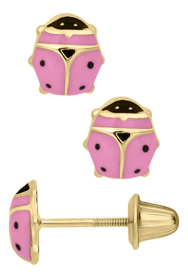 Baby Ladybug Post 7x8mm Earrings 14k Yellow Gold Enamelled
