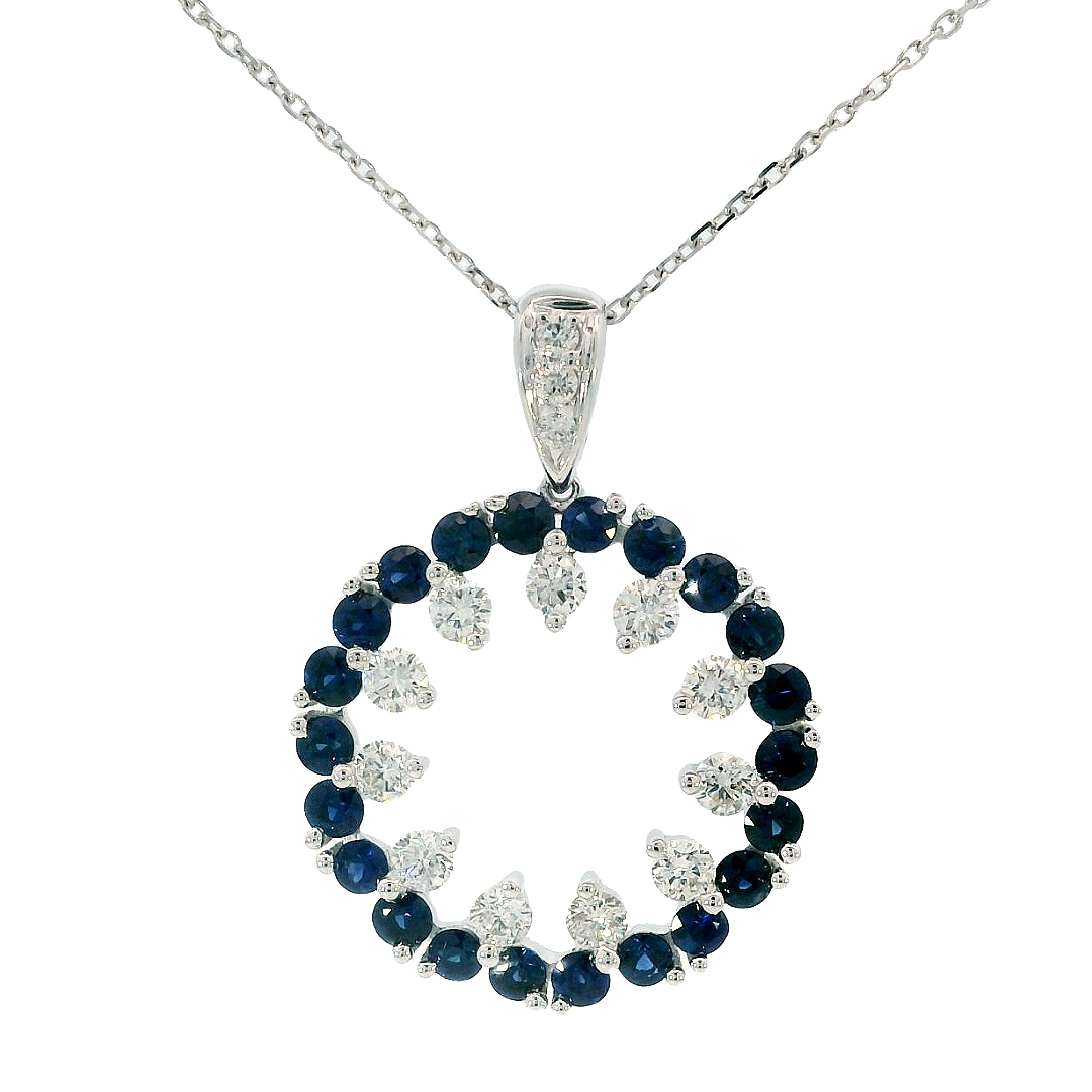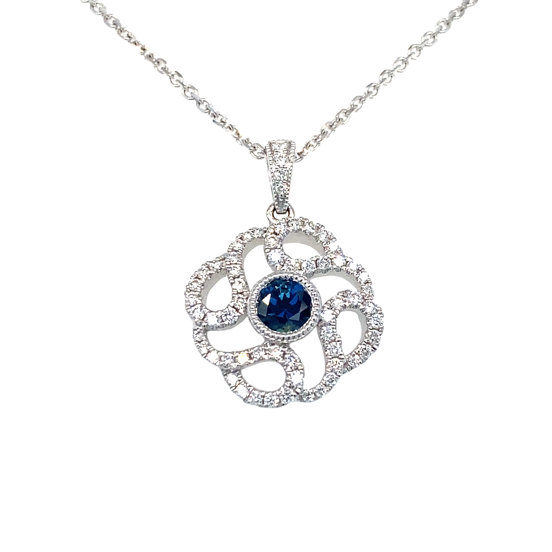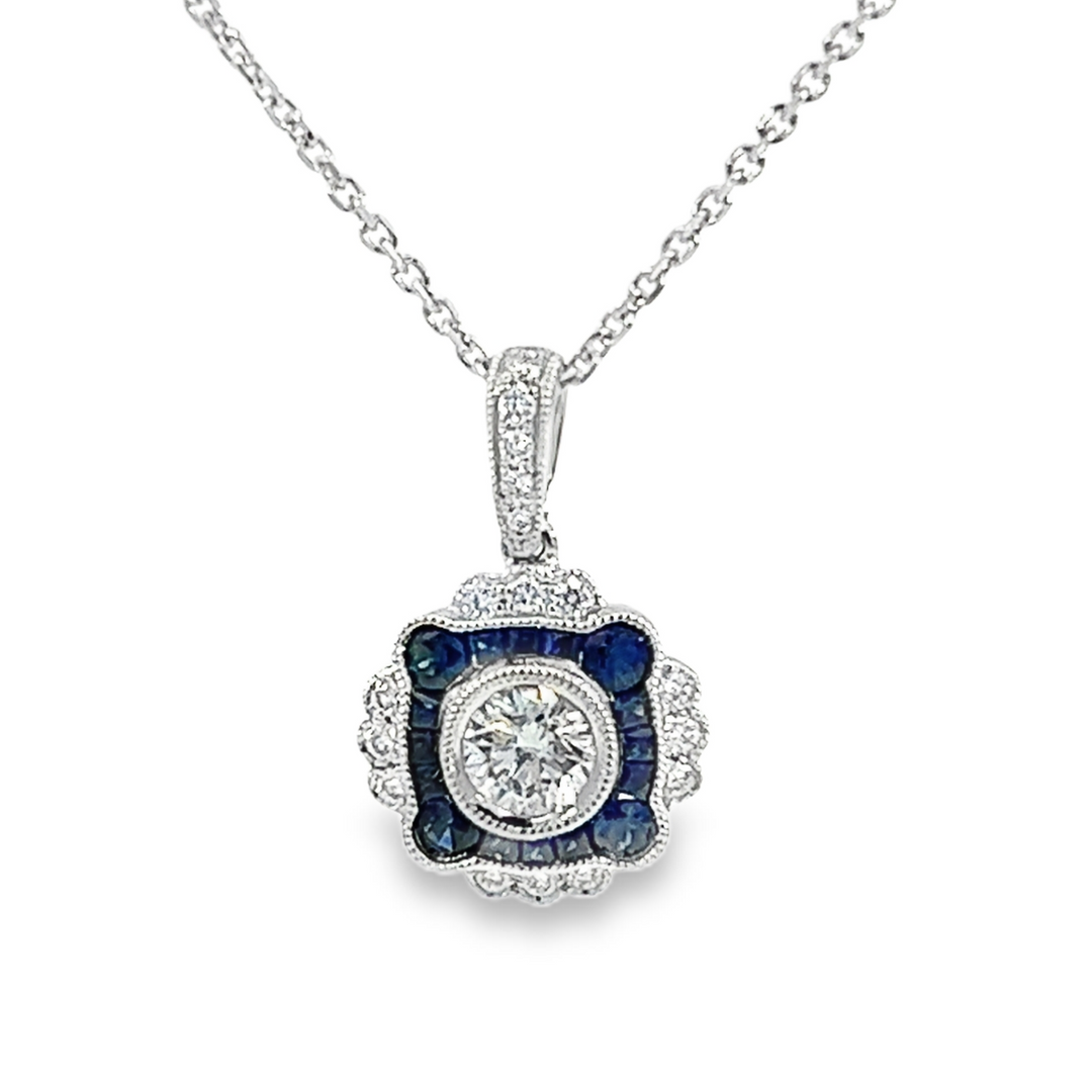 14k White Gold Multi Shape Sapphire Vintage Pendant