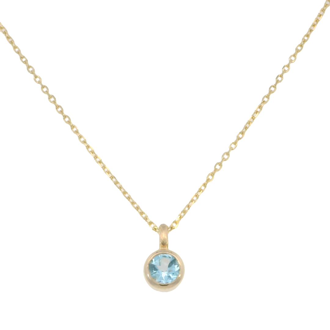 14k Yellow Gold Round Swiss Blue Topaz Solitaire Pendant