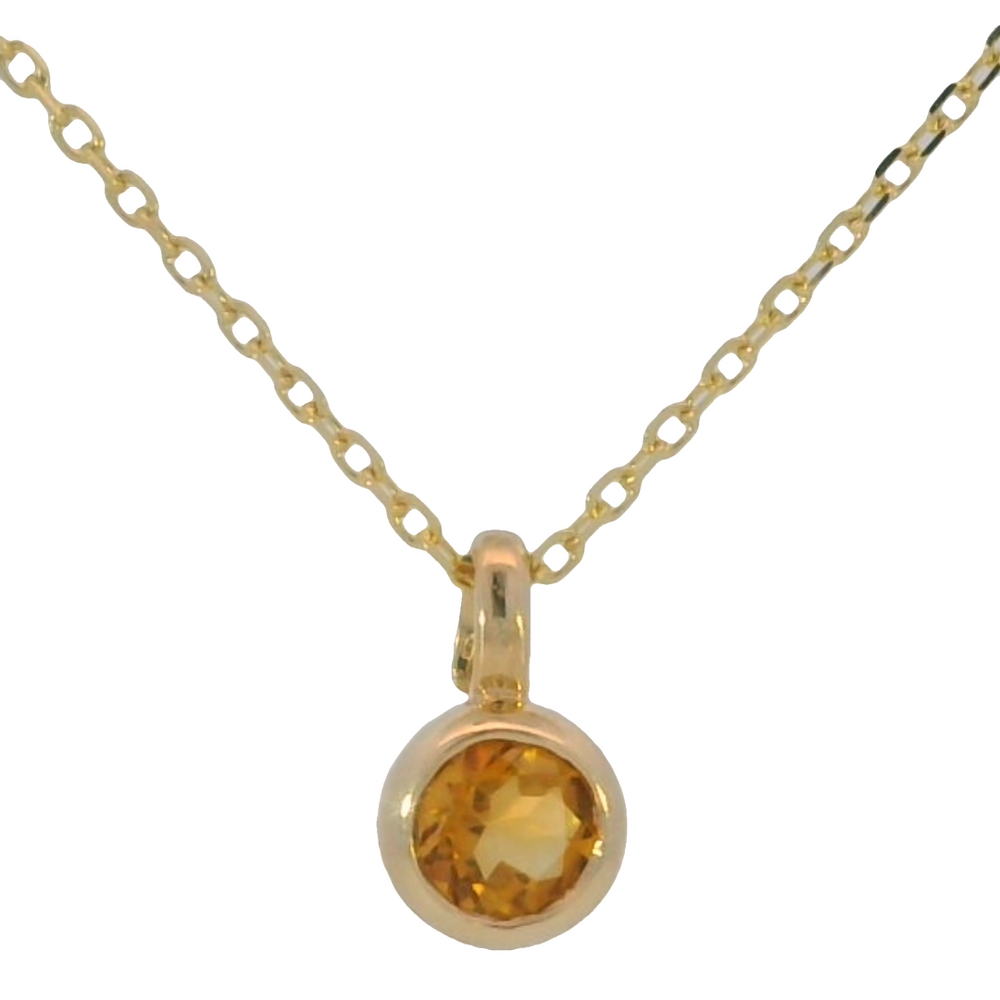 14k Yellow Gold Round Citrine Solitaire Pendant