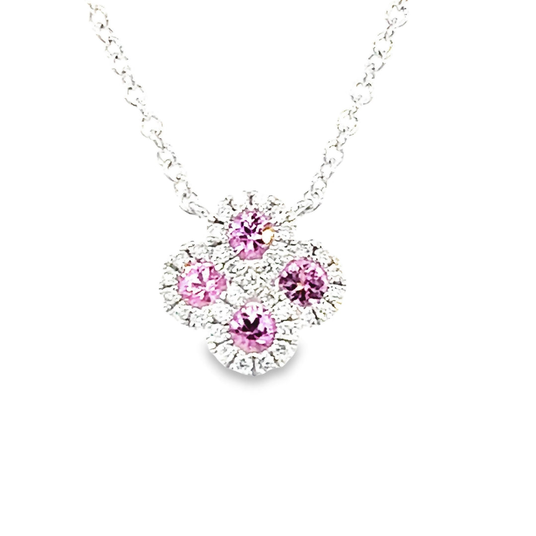 14k White Gold Round Pink Sapphire Cluster Pendant