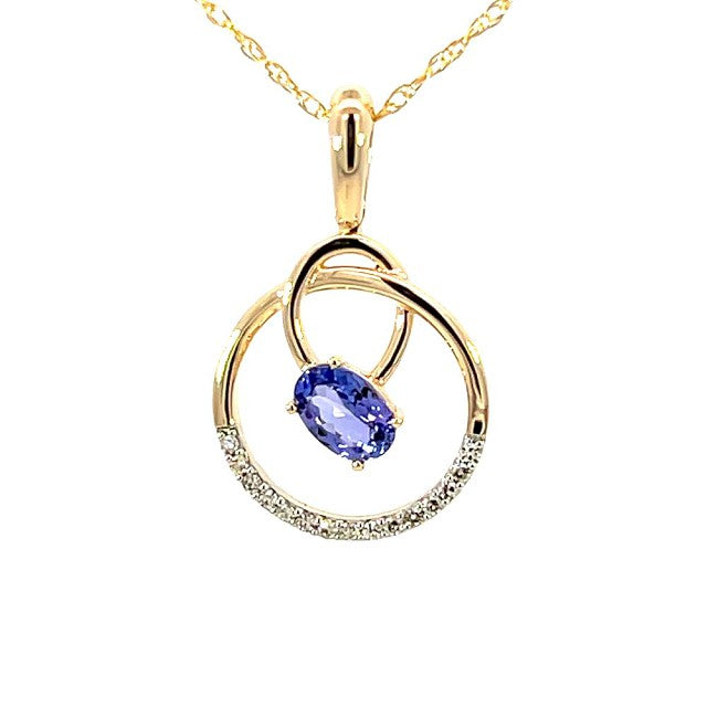 14k Yellow Gold Oval Tanzanite Free Form Pendant