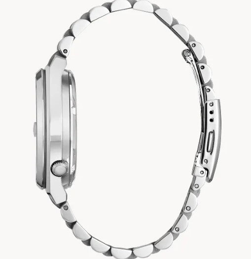 The TSUYOSA Automatic, from the NJ015 series, brings ultramodern sports styling right to your wrist. Executed in a versatile 40mm footprint, the sophisticated design of the watch makes a strong impression via a silver-tone stainless steel case and a seamlessly integrated, matching bracelet. Underneath an anti-reflective sapphire crystal, the sporty timepiece makes use of a sunray sky blue dial, with a 3 o’clock date window and contrasting silver-tone details adding to its classic aesthetic. Powered by an automatic movement and offering up to 50 meters of water resistance, the refined timepiece is a daily wearing choice ready for work, play, and everything in between. Caliber 8210.