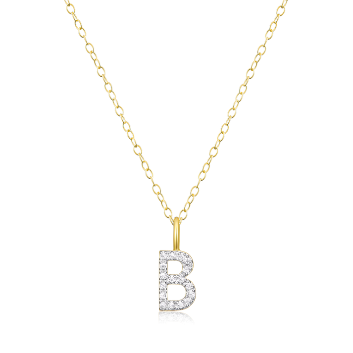 Initial 'B' Sterling Silver Yellow Gold Plated Lab Grown Diamond Pendant