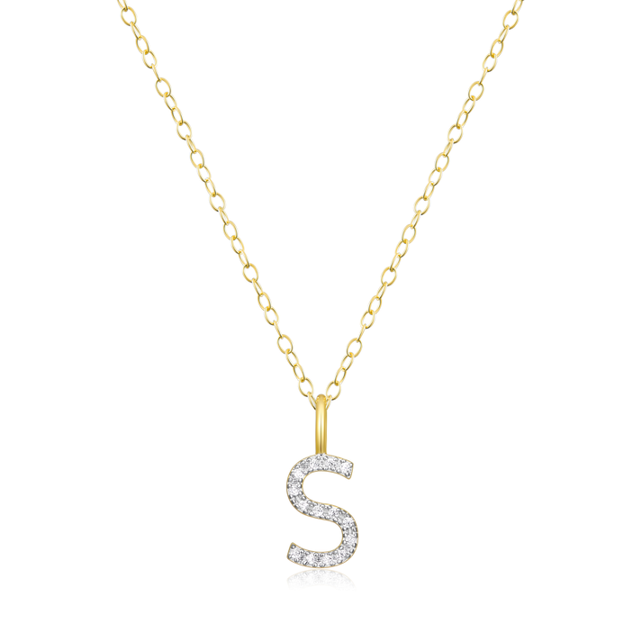 Initial 'S' Sterling Silver Yellow Gold Plated Lab Grown Diamond Pendant