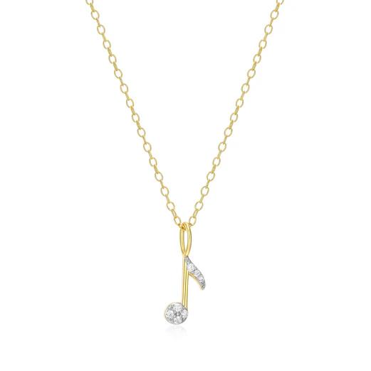 Music Note Sterling Silver Yellow Gold Plated Lab Grown Diamond Pendant