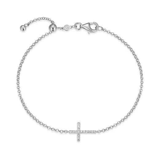 Sideways Cross Sterling Silver Lab Grown Diamond Bracelet