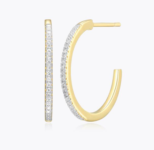 Lab Diamond Hoop Sterling Silver Yellow Gold Plated Lab Grown Diamond Earrings