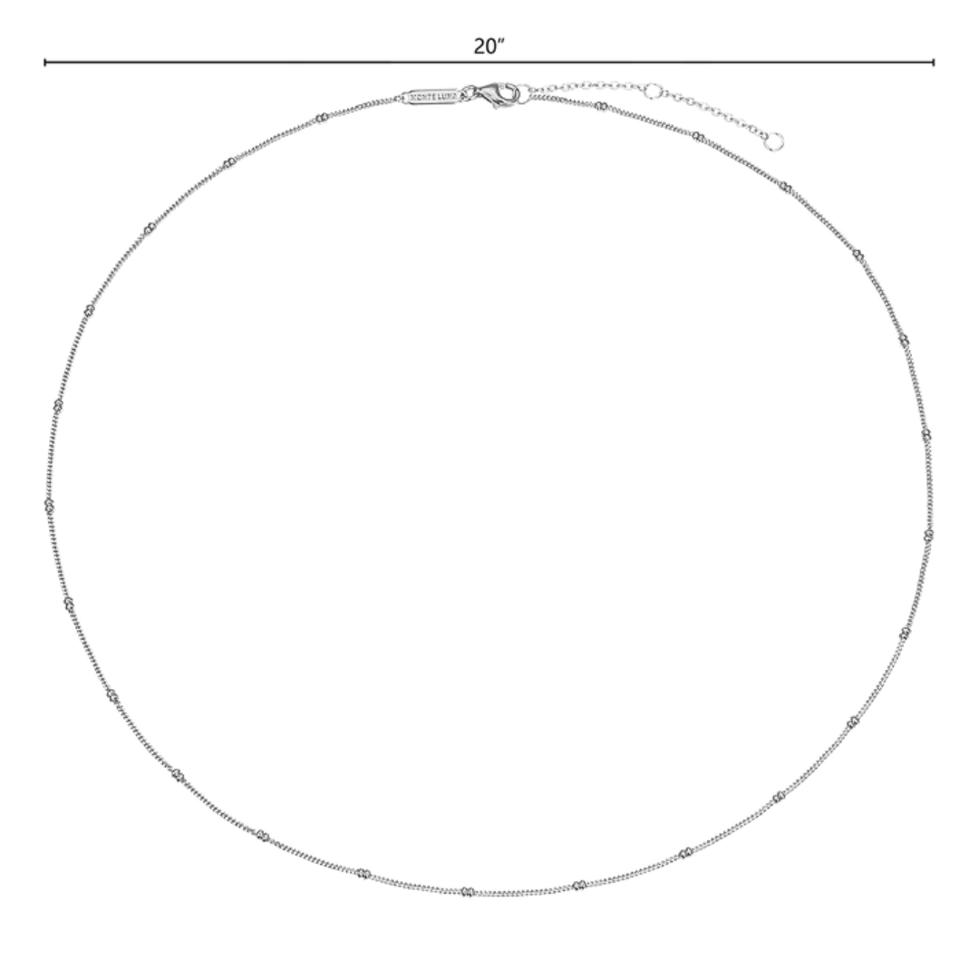 A sleek beaded chain crafted in rhodium plated sterling silver measuring 20 inches with a 2 inch extender. Finished with a secure lobster clasp, this versatile chain adds refined shine and is perfect for layering or wearing on its own.