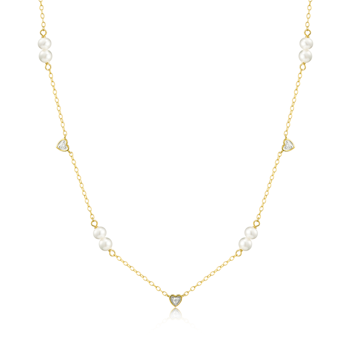 Hearts & Pearls Station Necklace Sterling & 14k Yellow Gold Plated Lab Grown Diamond Pendant