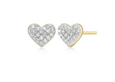 Pave Heart Sterling & 14k Yellow Gold Plated Lab Grown Diamond Earrings