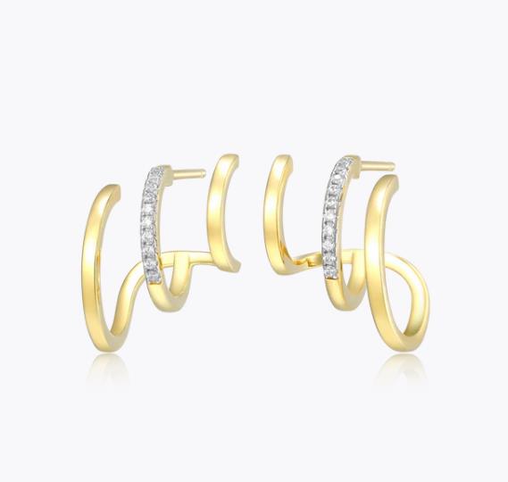 Triple Loop Yellow Plated Yellow Gold Lab Grown Diamond Earrings